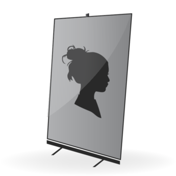 Das Motiv aus der Kassette ziehen, das Rollbanner dabei nach hinten senken und das Motiv in den Aufsatz einklinken.